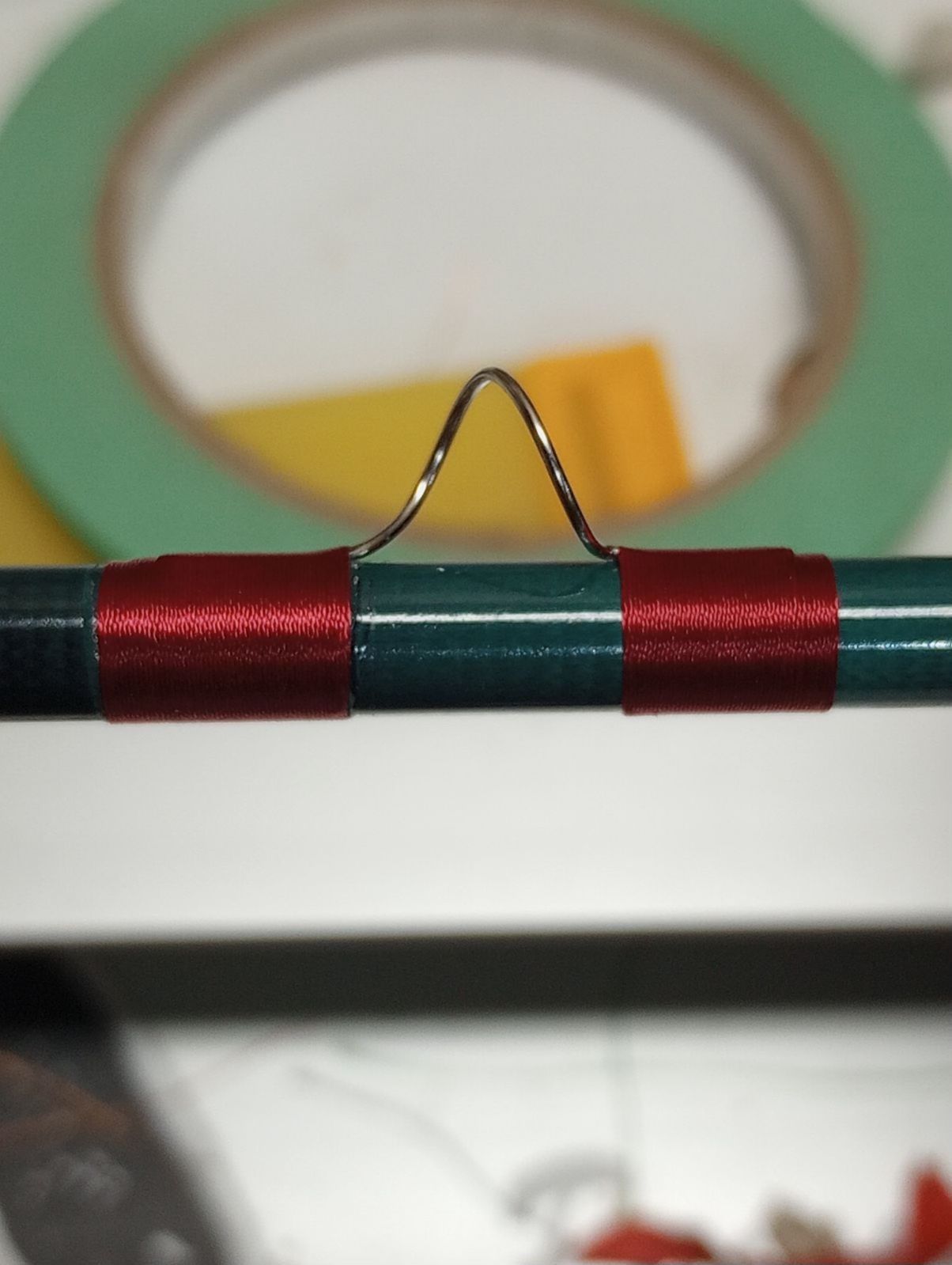 We place our hook keeper about 30 to 35 inches from the grip, on top of the rod and opposite the guides, for optimal convenience and functionality. It securely stores the hook with the sharp end facing away from the rod. This prevents the hook from scratching or scoring the rod blank, which could cause rod failure.